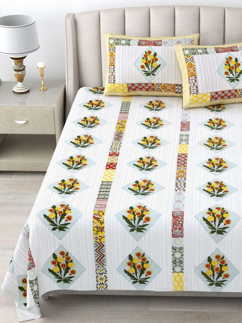 100% Pure Cotton Traditional Printed Bedsheet for Double Bed King Size Bedsheet with 2 Pillow Covers