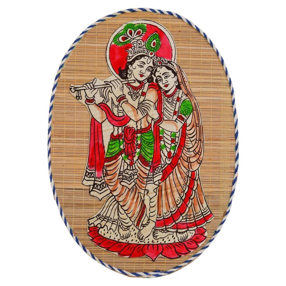 Oval Shaped Design Bamboo Hand Crafted Wall Hangings Of Krishna Ji With Radha Ji For Home D?cor | Bamboo Art For Wall Decor
