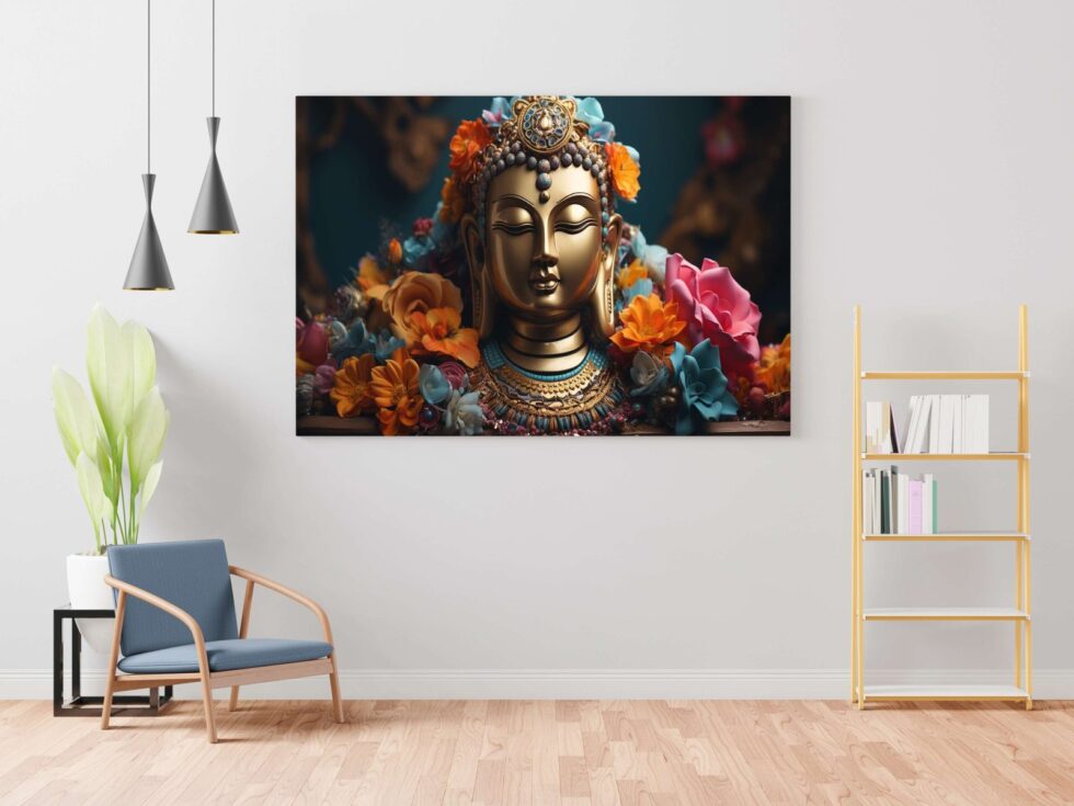 Transform your space into a sanctuary of tranquility with our exquisite Buddha wall paintings. Crafted with meticulous detail and imbued with spiritual serenity, each piece radiates peace and harmony. Elevate your home decor with these timeless artworks, perfect for creating a serene ambiance in any room. Explore our collection and invite the essence of enlightenment into your living space today The canvas is carefully stretched over a durable wooden frame, creating a gallery-quality finish that adds a touch of elegance to any room. Whether you’re looking for a Buddha framed painting for wall or a Buddha big wall painting with frame